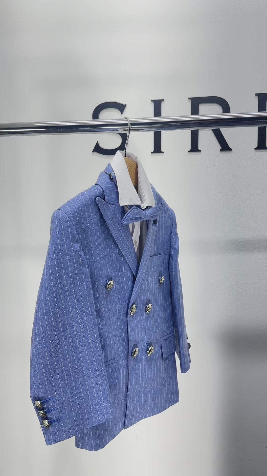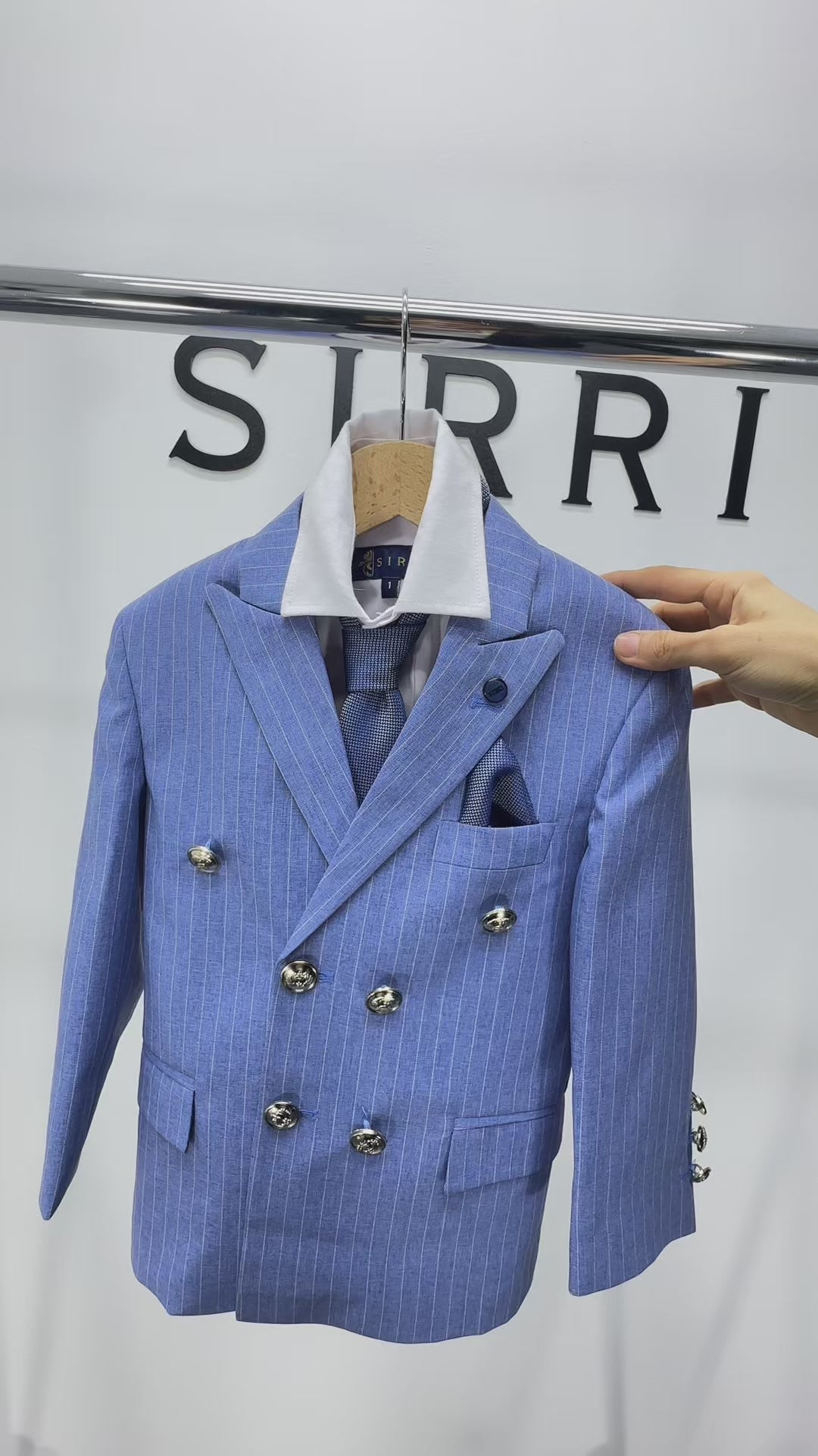 بدلة أولاد مزدوجة الصدر مخططة - طقم 3 قطع و 6 قطع - أزرق سماوي