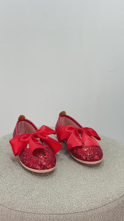 أحذية باليرينا مسطحة مزينة بالترتر للبنات - لولا - أحمر
