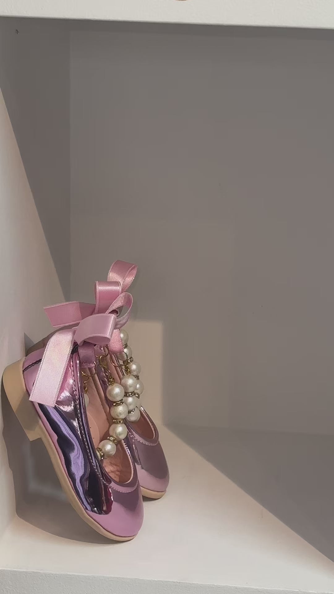 Mädchen Perlen & Band Slip-On Lack Mary Jane Schuhe - TEAN - Rosa