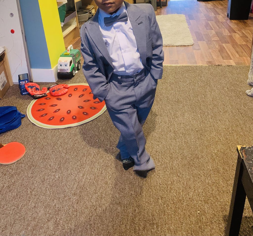 Presentamos el traje de niño de cuatro piezas con doble botonadura de Sirri, diseñado con forro de lujo y tela premium para asegurar que brille en cualquier evento. Cortado en un ajuste entallado, la chaqueta con patrón propio se lleva sobre una camisa abotonada y pantalones que están confeccionados para la comodidad. Este conjunto incluye una chaqueta de doble botonadura, pantalones, camisa de vestir con su respectivo pajarita, convirtiéndolo en un básico perfecto para el armario. Combina el conjunto con elegantes zapatos de vestir de nuestra amplia colección de calzado para niños.