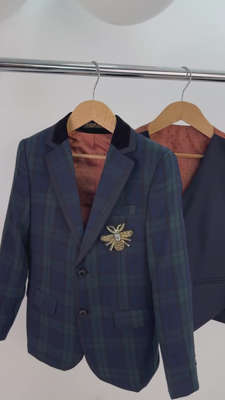 Traje a cuadros escoceses elegante para niños - Azul marino - Verde