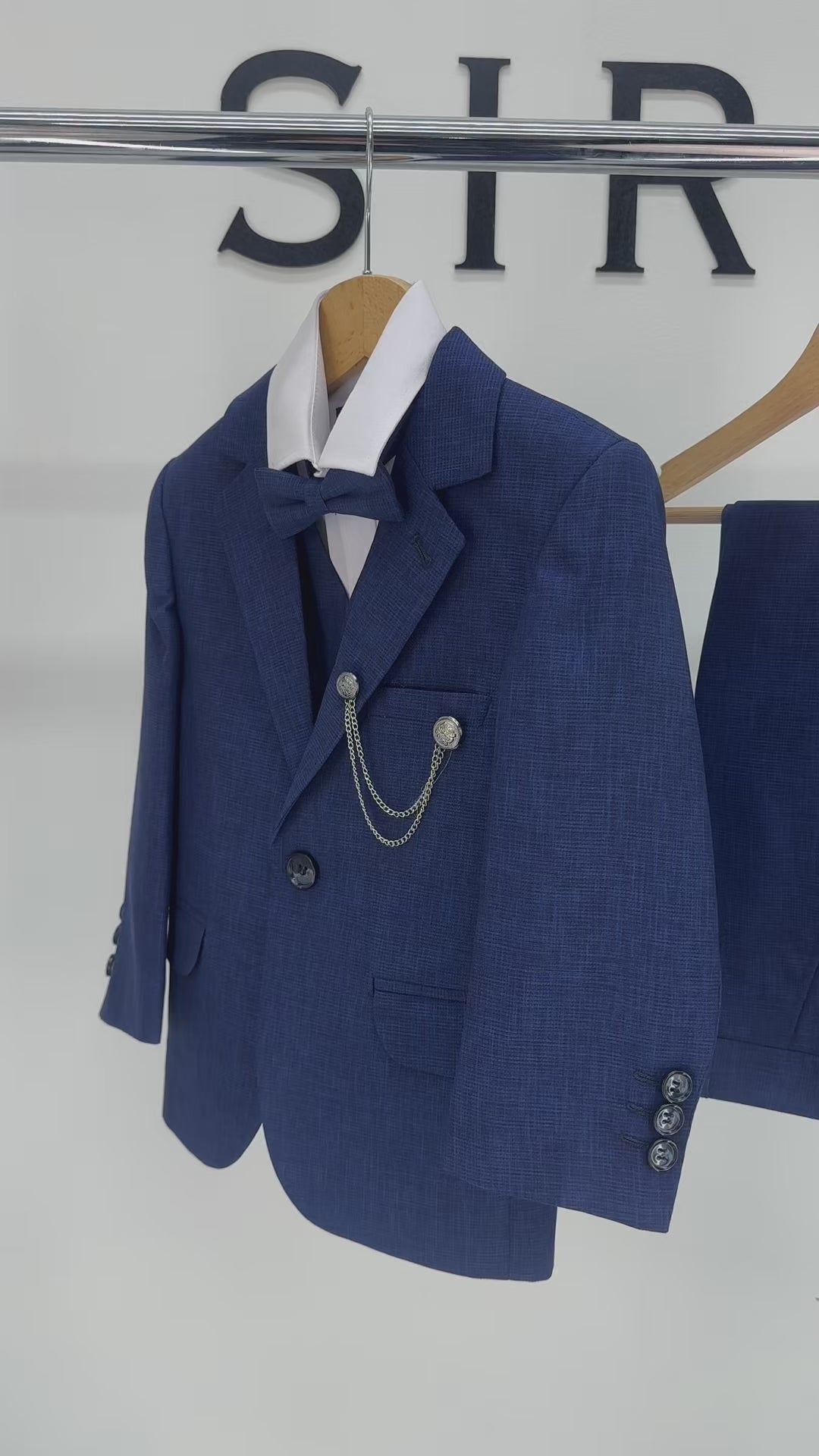 Offrez à votre petit gentleman une allure sophistiquée avec notre costume classique 8 pièces, un incontournable de sa garde-robe. Confectionné avec un souci du détail exceptionnel, cet ensemble comprend une veste droite élégante, un gilet raffiné et un pantalon assorti, réalisés dans un tissu haut de gamme alliant confort et durabilité. Polyvalent, il convient à toutes les saisons et met parfaitement en valeur les détails subtils et distinctifs du costume, tels que la cravate élégante, le nœud papillon, le mouchoir et la chaînette contemporaine qui apporte une touche de modernité. Ce costume à la coupe ajustée est conçu pour convenir à toutes les morphologies, de 1 à 16 ans, et est disponible de la taille slim à la grande taille. Qu'il assiste à un mariage ou à une autre occasion spéciale, ce costume sublimera son style en toute simplicité. Associez-le à notre sélection de… Des chaussures habillées pour garçon pour compléter votre look.