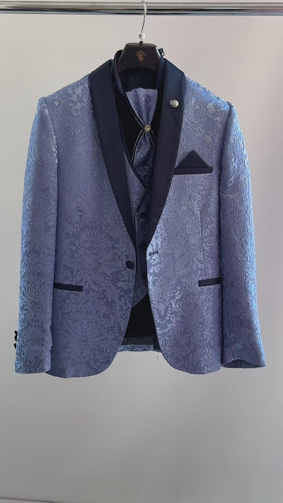Completo da tuxedo per ragazzi con revers in raso e motivo floreale paisley - Blu