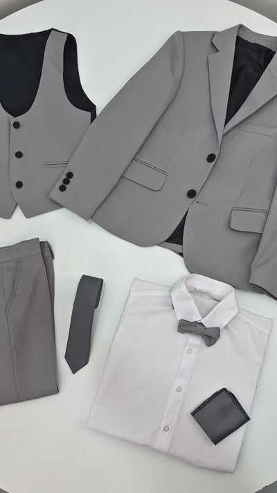 Boys’ 7-Piece Self-Patterned Formal Suit Set - Planet - Grey