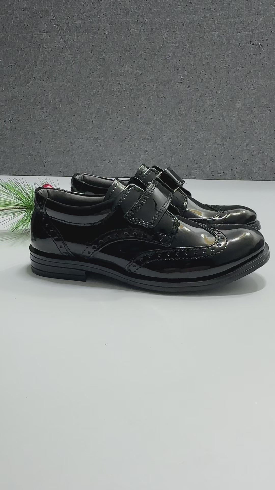 Boys Patent Brogue Velcro Dress Shoes - Black