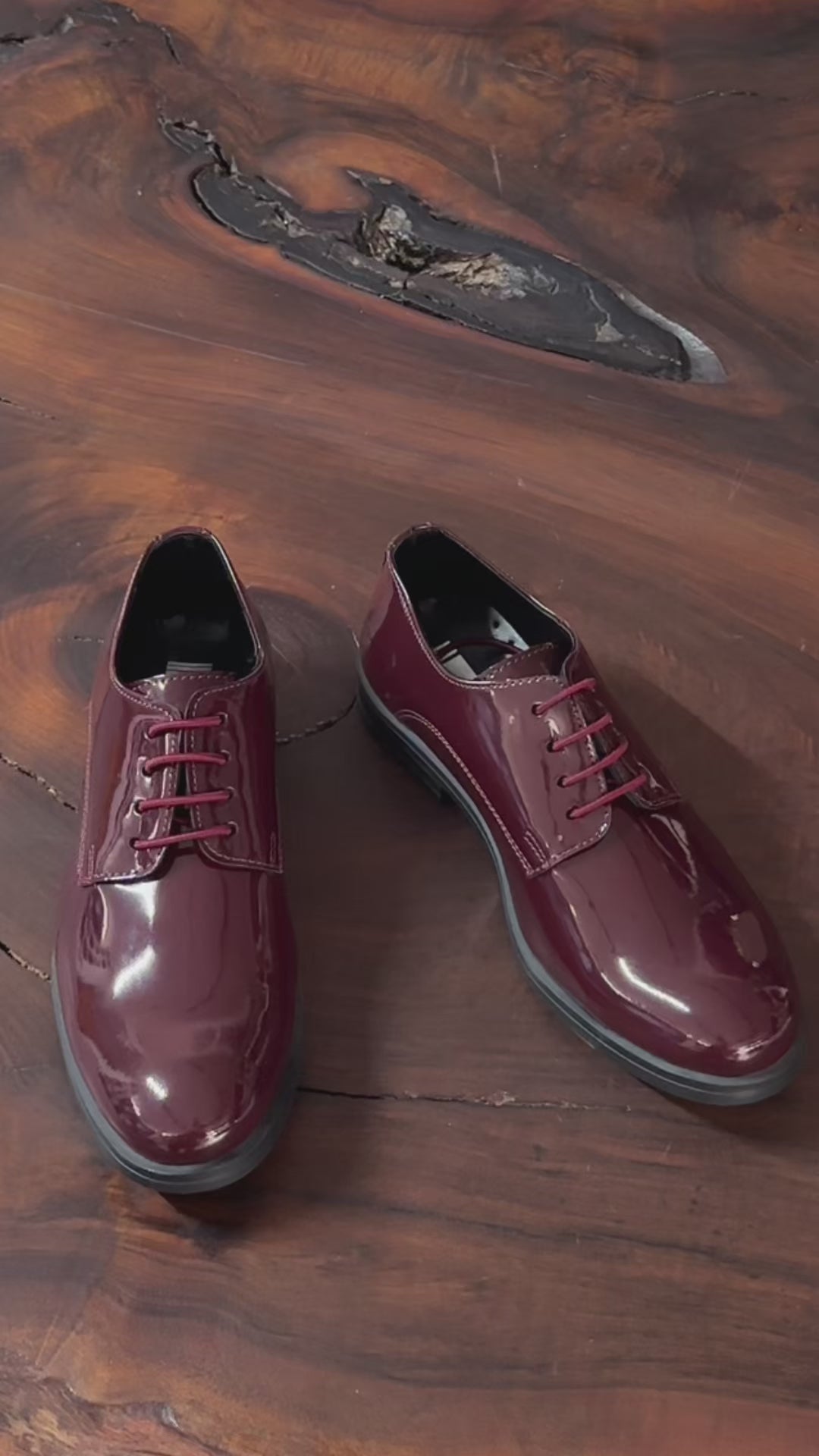 Boys Derby Patent Lace Up Formal Shoes - Burgundy
