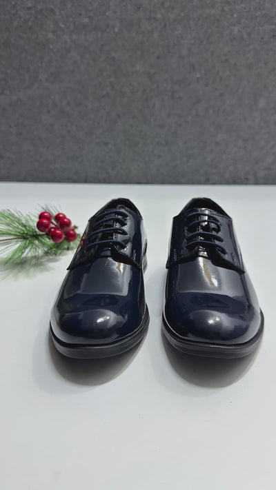Boys Derby Patent Lace Up Formal Shoes - Navy Blue