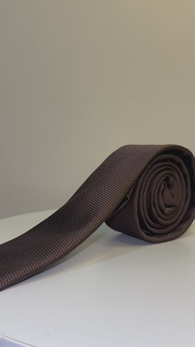 Boys' Oxford Weave Slim Tie Formal Neckwear - Dark Brown