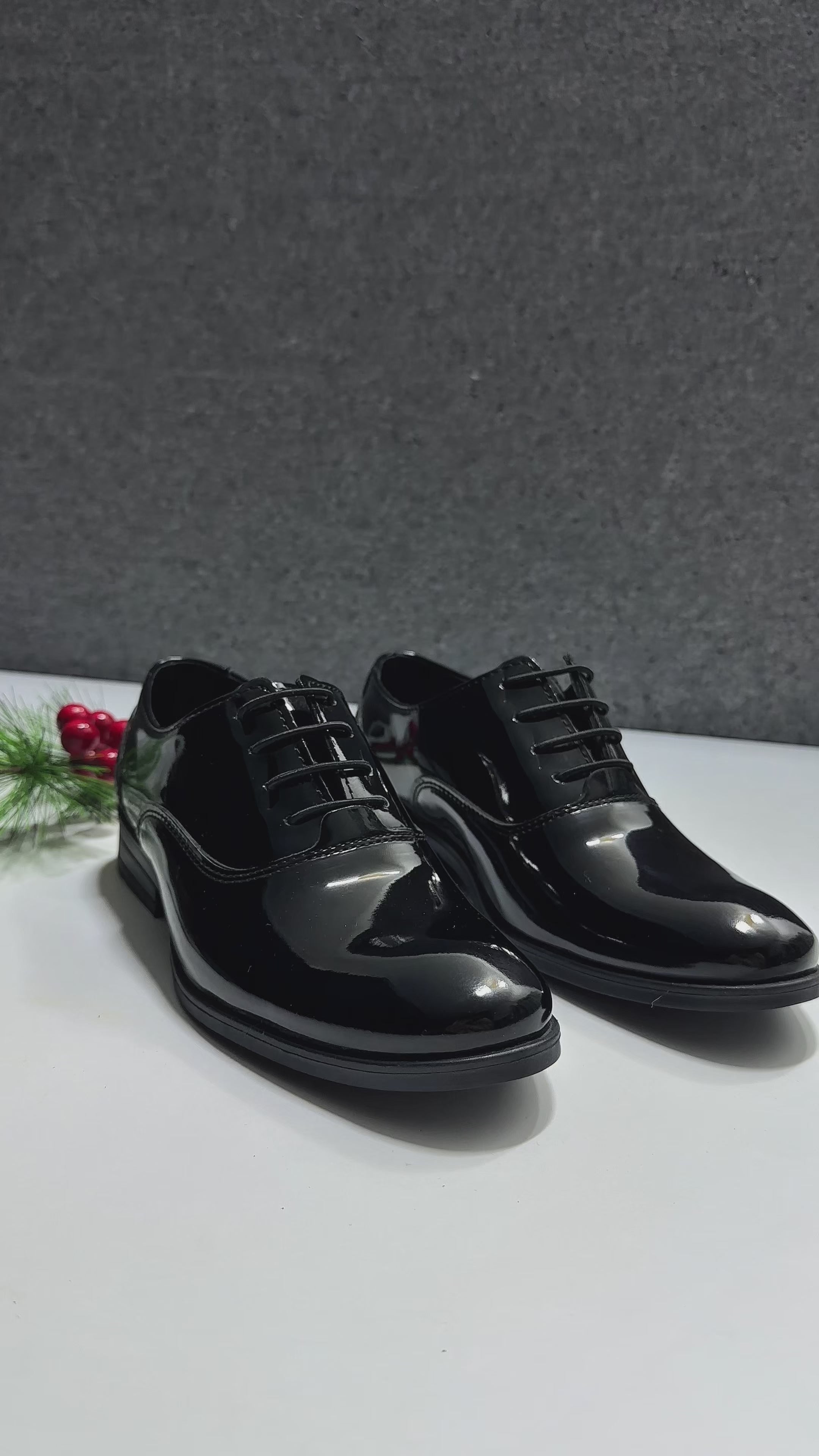 Presenting our Sirri sleek patent black dress shoes for boys—where classic elegance meets modern appeal. Expertly designed from patent leather, these plain-toe oxford dress shoes feature a convenient lace-up closure, making them perfect for formal occasions, school events, and special celebrations. Combining style and comfort, these formal shoes are crafted with a study sole for all-day comfort, ensuring your little prince looks dapper. For the perfect finishing touches, pair them with a sharp suit from our boys’ collection.