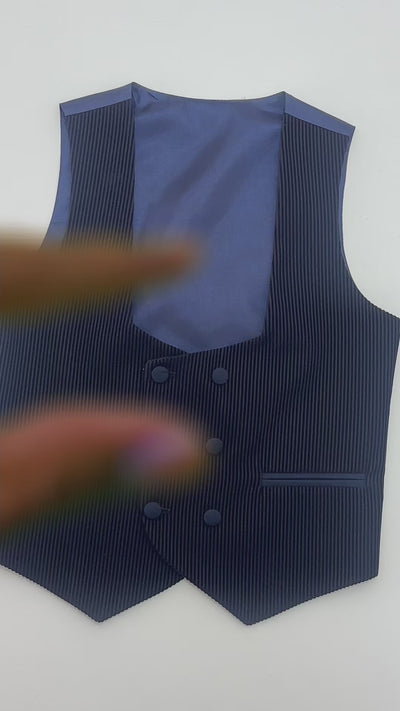 Boys Double Breasted Corduroy Velvet Waistcoat - Navy Blue