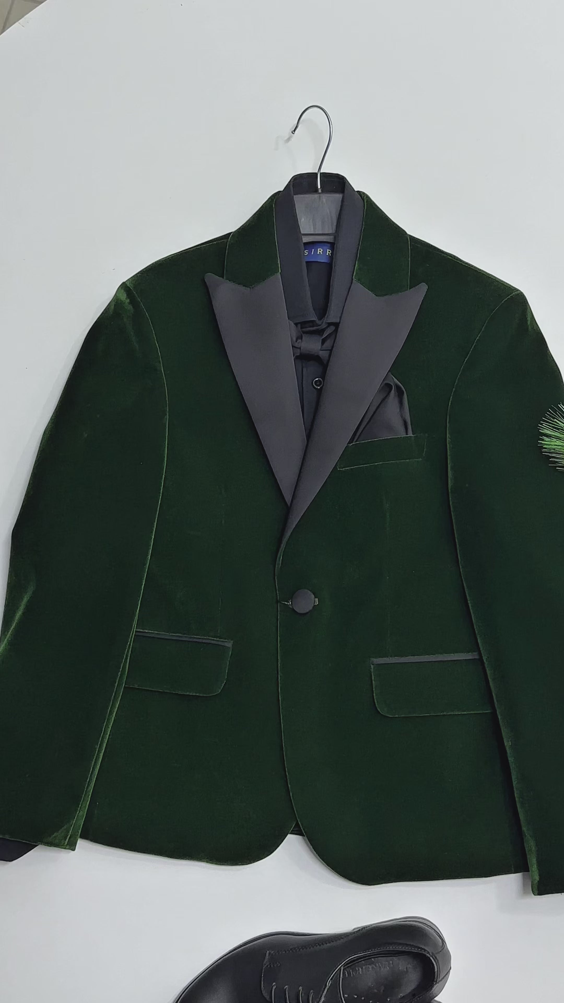 The Sirri velvet tuxedo-style blazer for boys is a statement piece that blends timeless elegance with modern sophistication. Expertly tailored in a slim-fit cut from premium materials, this velvet dinner jacket offers a luxurious texture and refined structure, making it ideal for special occasions and formal gatherings.