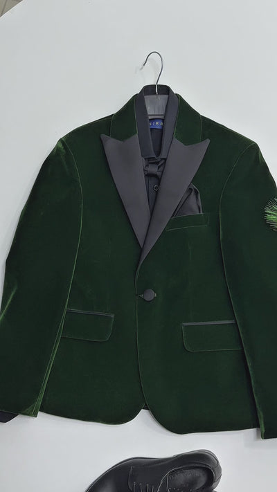 Boys Velvet Blazer Satin Lapel Dinner Jacket - Mayfair - Green