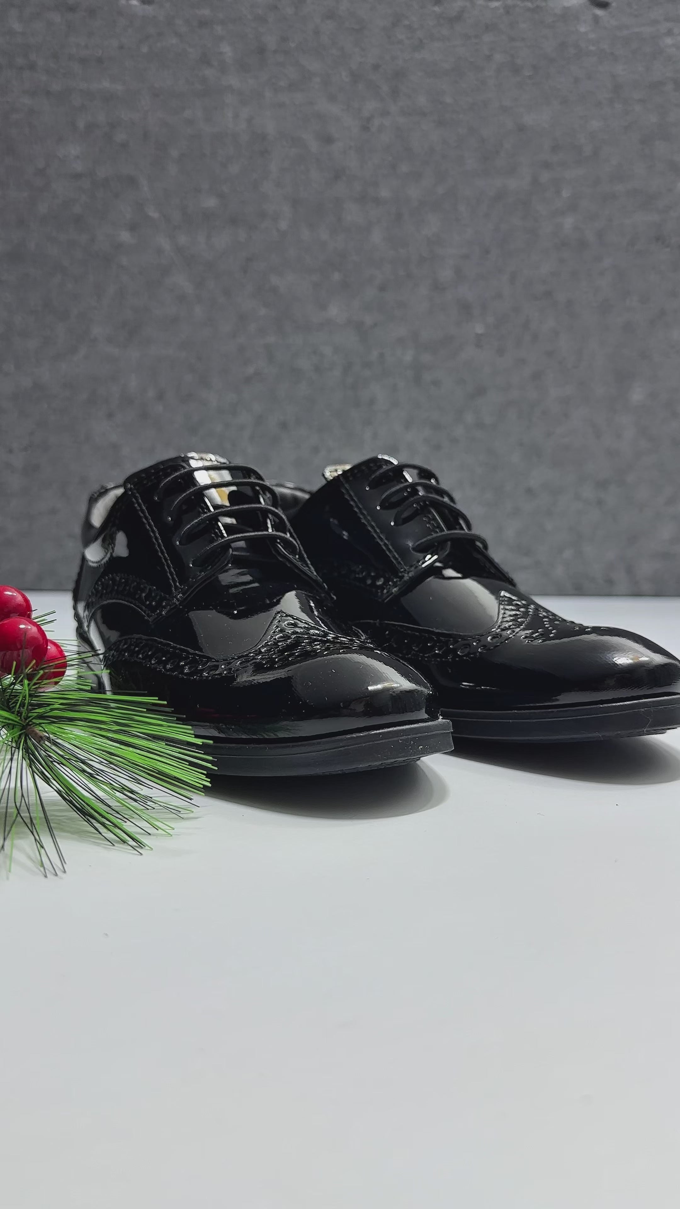 Boys' Brogue Lace Up Derby Formal Wingtip Dress Shoes