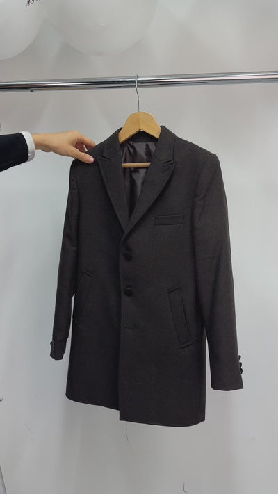 Boys Wool Herringbone Tailored Fit Midi Winter Coat - Dark Brown