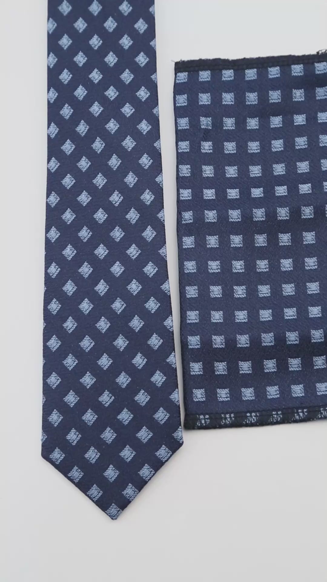 Men’s Textured Diamond Slim Tie & Pocket Square Set - Navy Blue