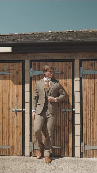 Men's Wool Blend Herringbone Check Suit - Albert - Brown