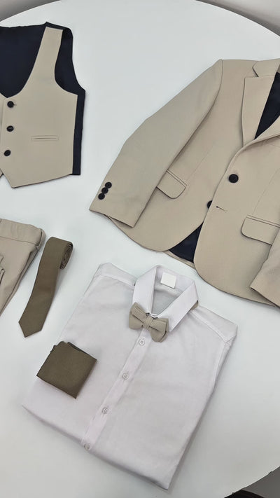 Boys’ 7-Piece Self-Patterned Formal Suit Set - Planet - Beige