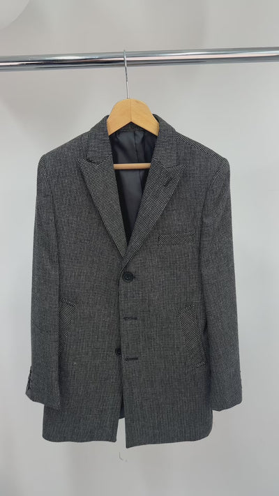 Erkek Çocuk Yünlü Kazayağı Desenli İnce Kesim Orta Boy Kışlık Kaban
