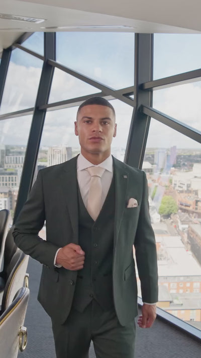 Men’s 3-Piece Glen Check Tweed Like Suit - Regent - Olive Green